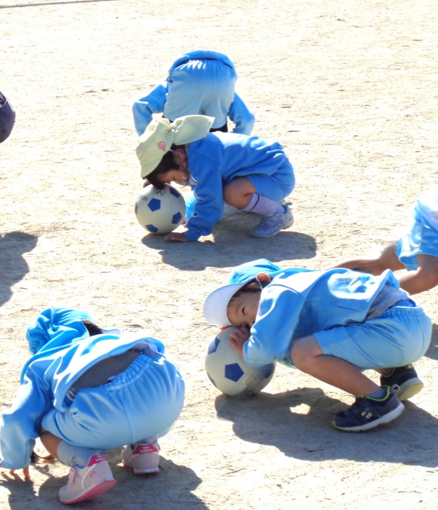 思いきりボールと戯れる子もいれば、様子をみている子、