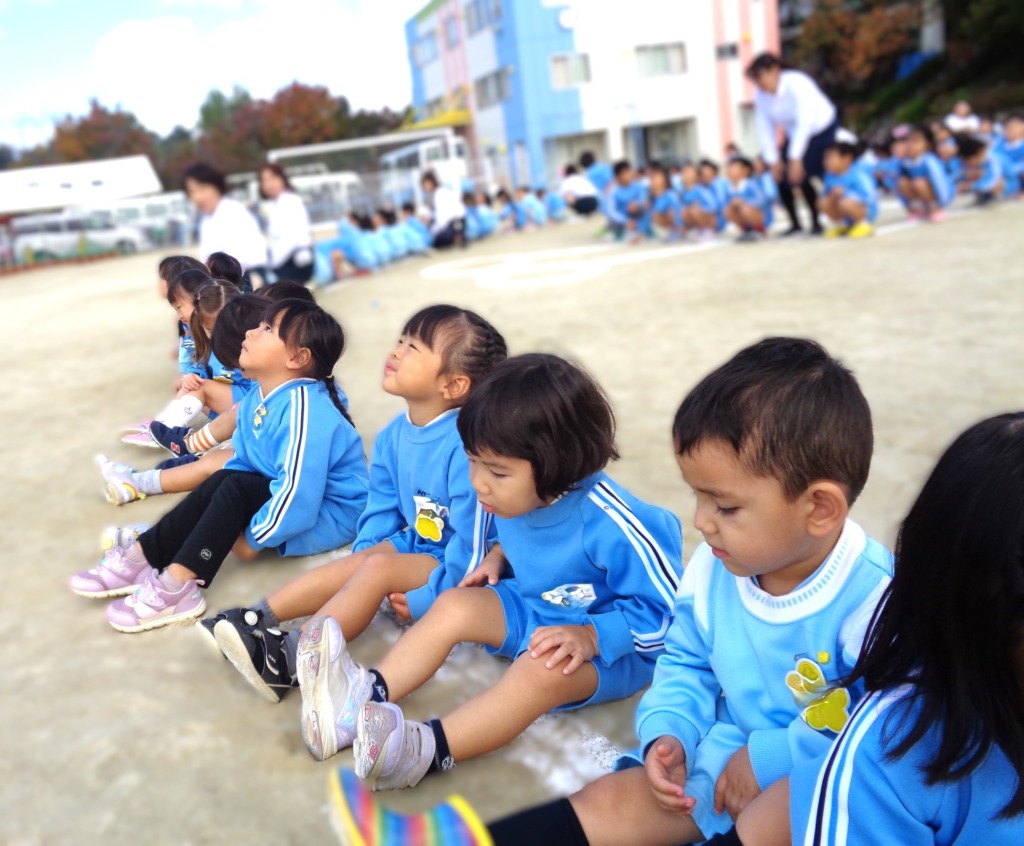 登園時間から運動場では撮影用の下絵がかかれていたので