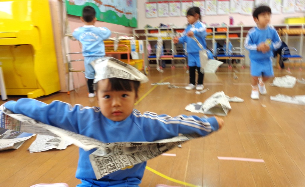 新聞紙を敷いて、その上だけ歩いてよいというルールで島わたりをしたり