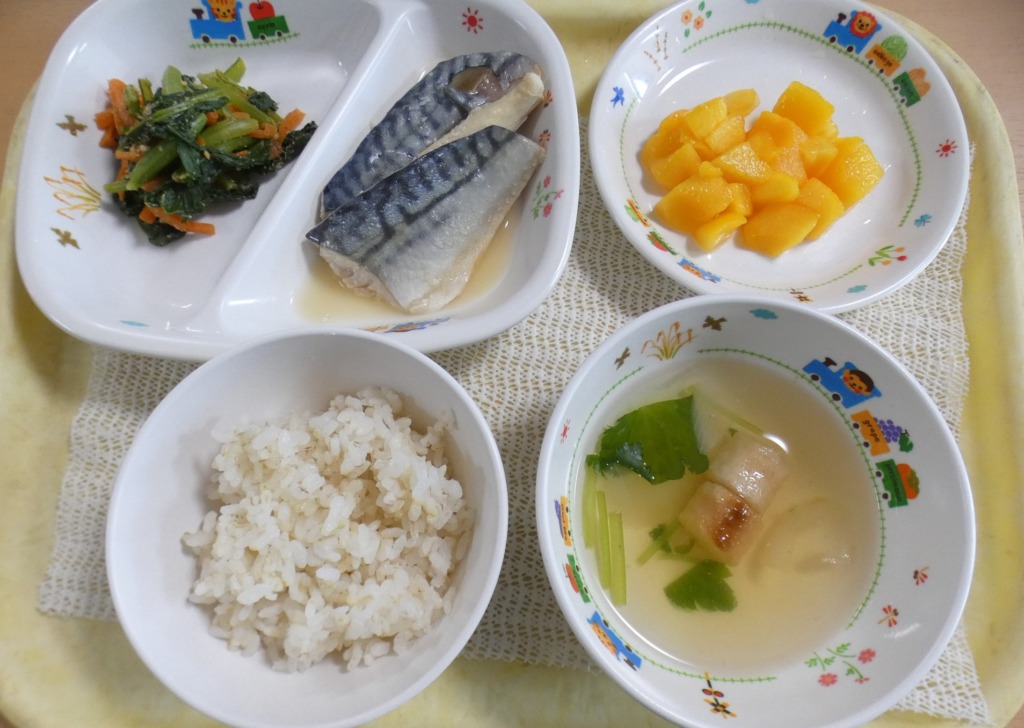 ・ご飯・鯖の味噌煮・小松菜のごま和え