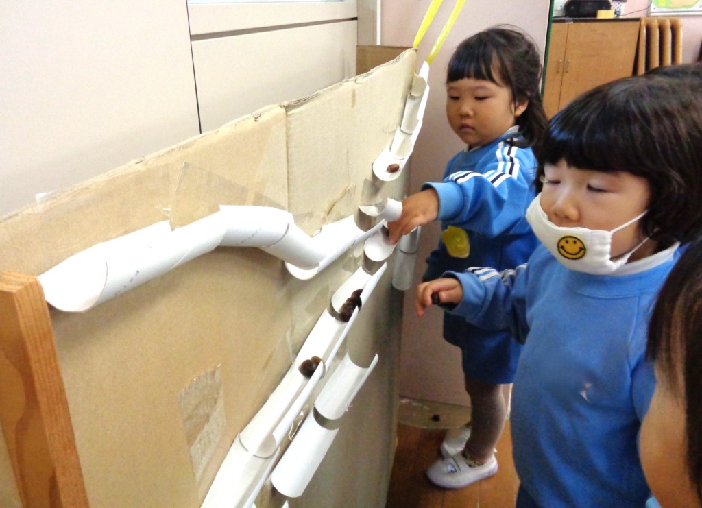 子どもたちは繰り返しどんぐりを転がして遊びおおいに楽しみました!