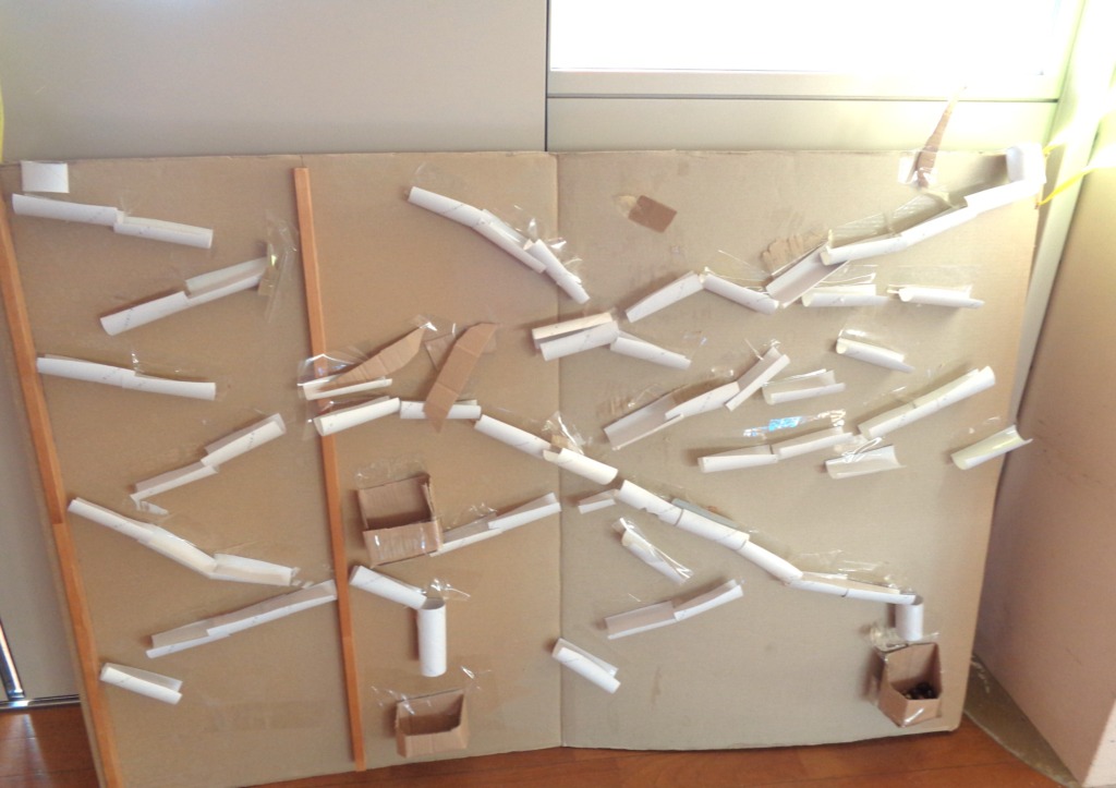 コースを貼って作っては、どんぐりがうまく転がるか試します💡
