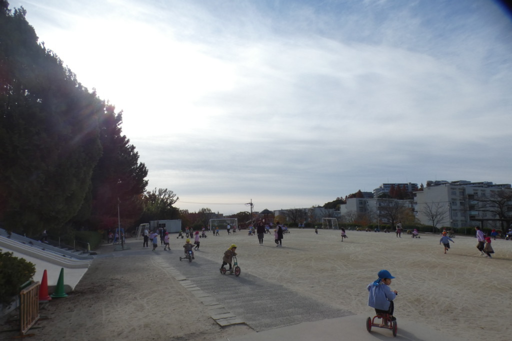 朝は少し雲がかかって冬の空でした。でもそんなことはお構いなし!!寒さに負けず元気いっぱい体を動かして遊んでいましたよ☆