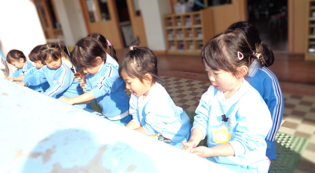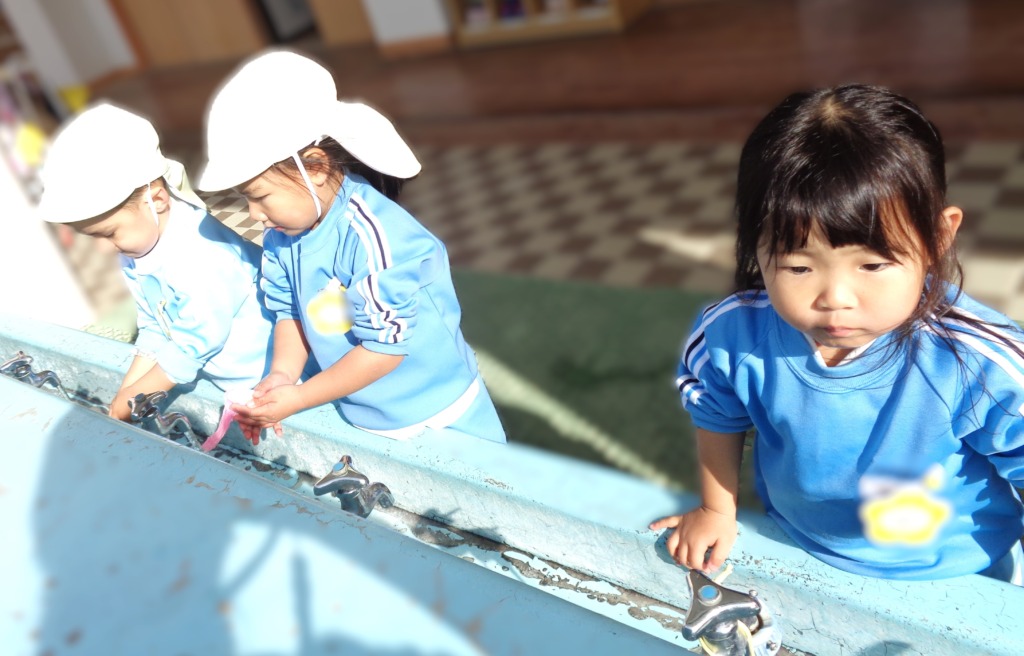 「バイキンをやっつけるよ!」としっかり洗っている子どもたちです。