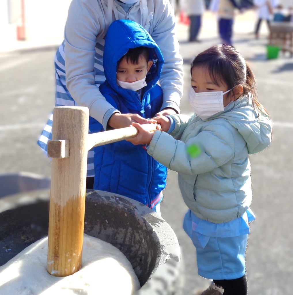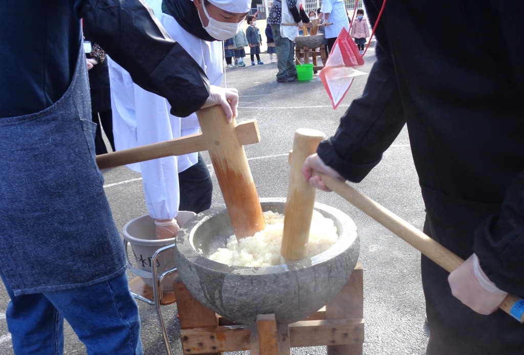 ♥️おもちつきには役員さんとボランティアの保護者の方々が