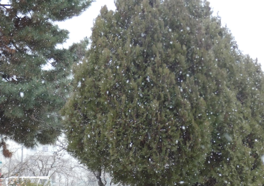今日は雪が降ってきました。