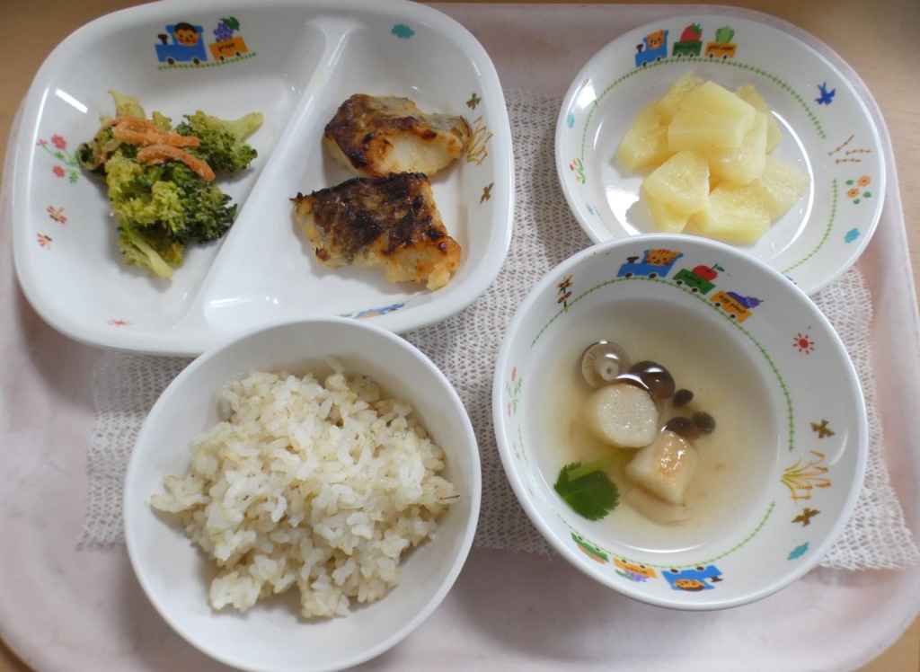 ・ご飯・白身魚の西京焼き・ブロッコリーのごま和え