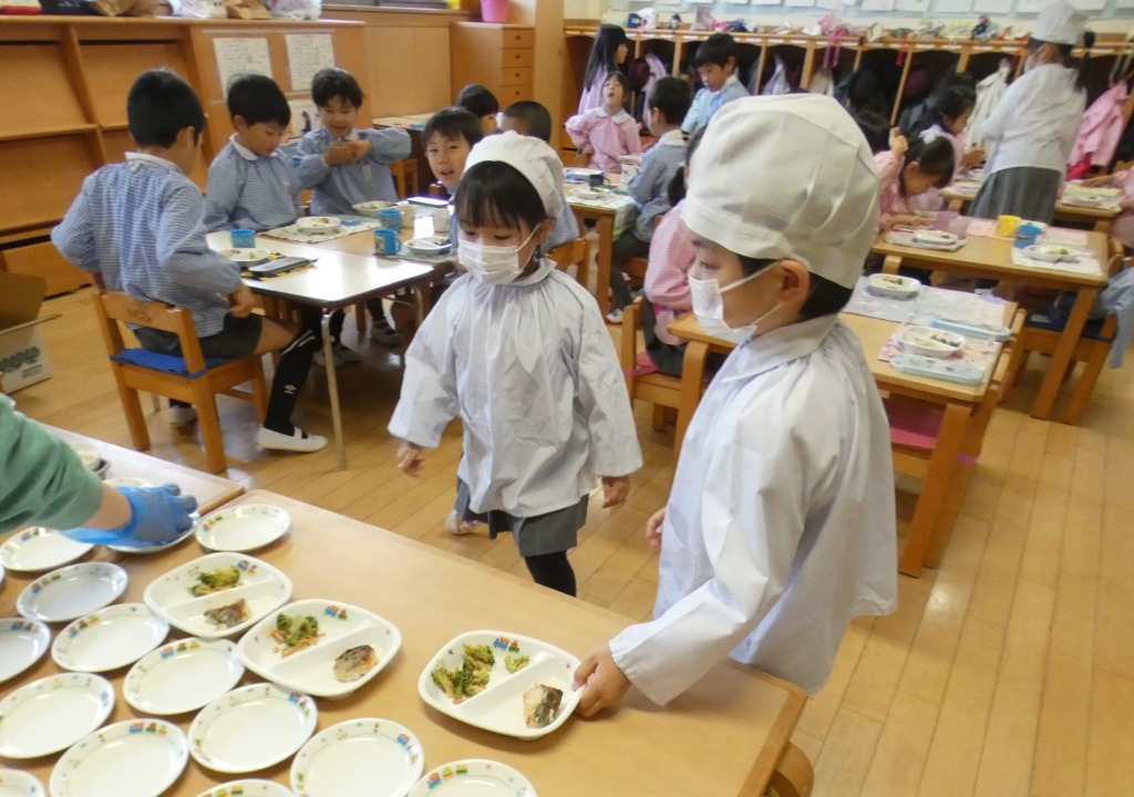 給食当番さん活躍中です。