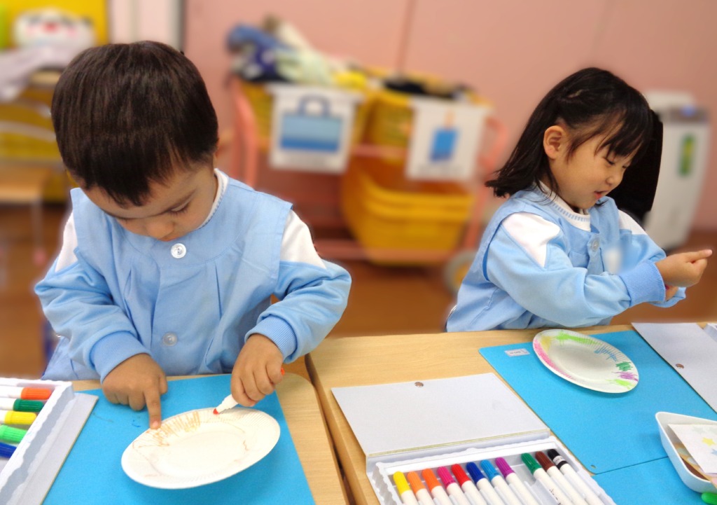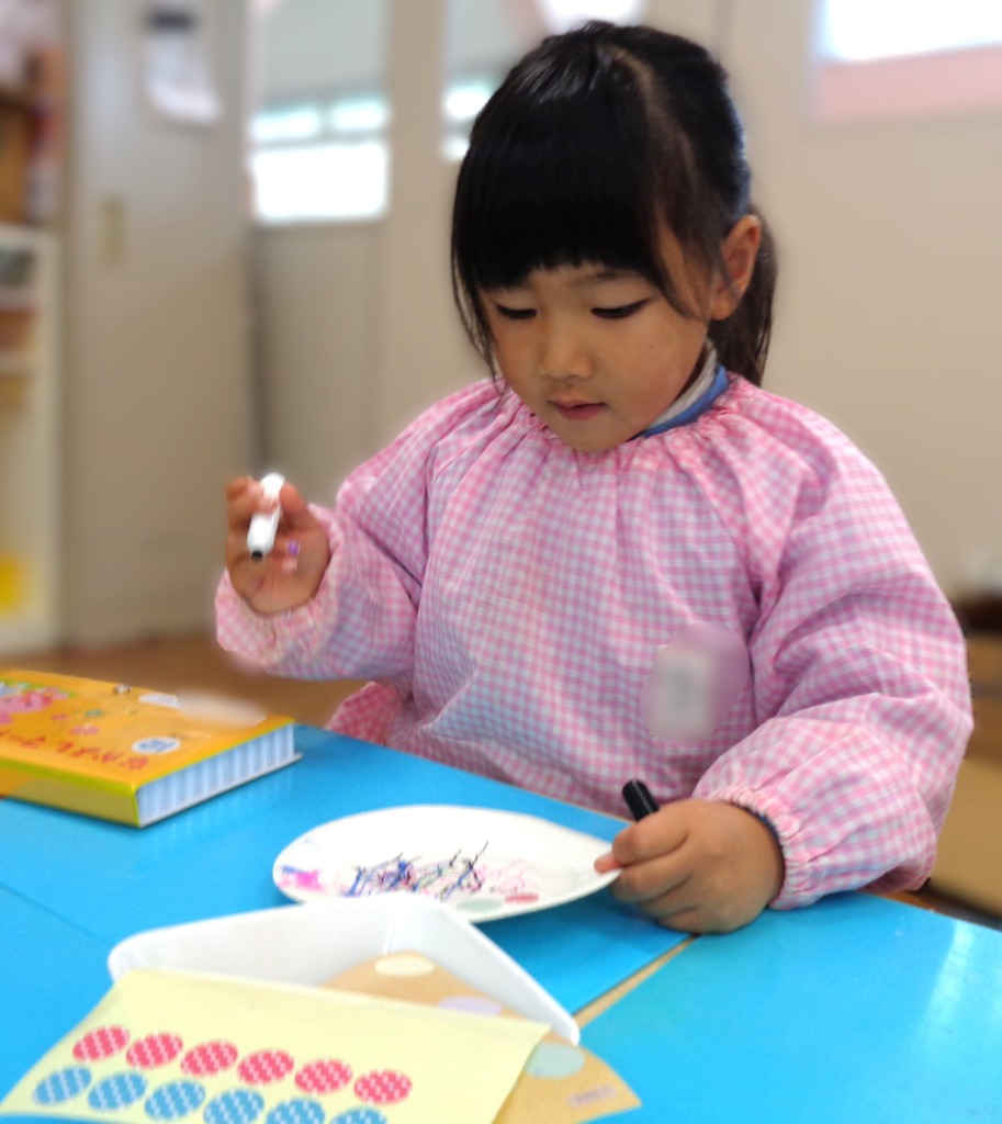 マーカーで色を塗ったり、シールを貼ったあとは