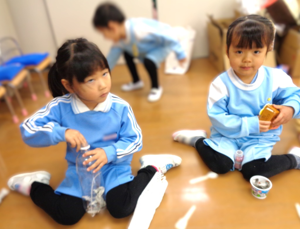 ご家庭から持ってきていただいた廃品も少し出して、ごっこ遊びに使いました。