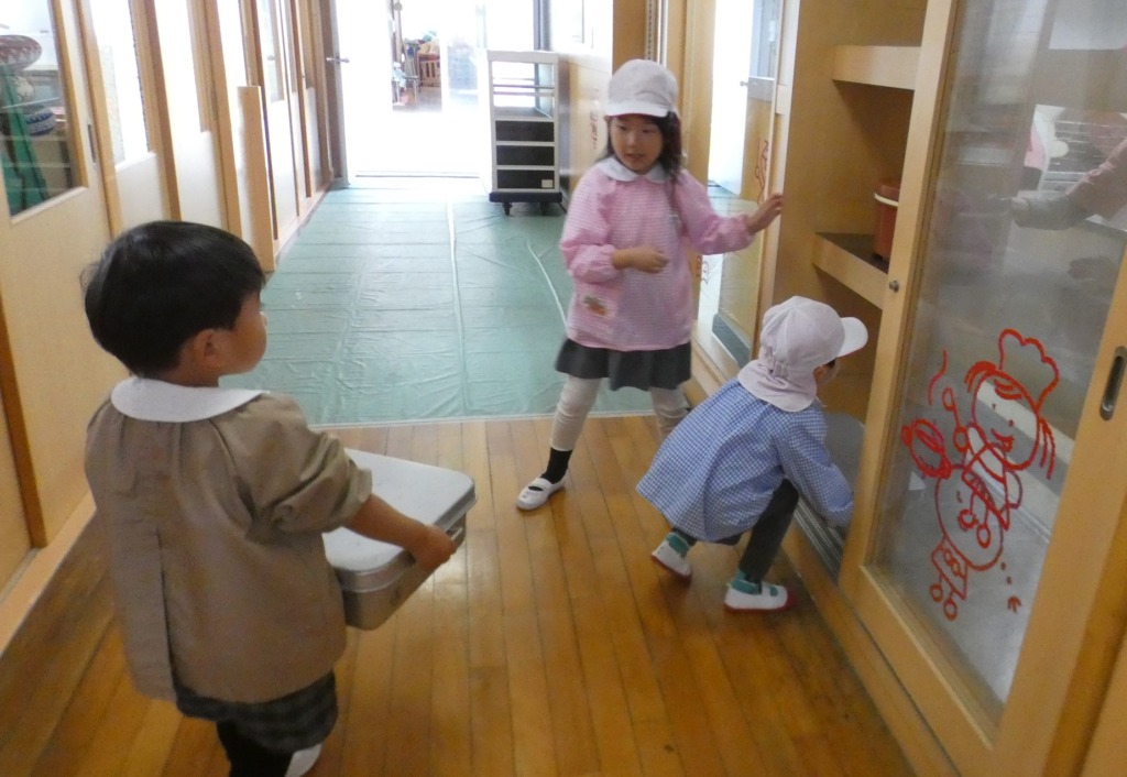 お当番さんがお休みを伝えに来てくれました。