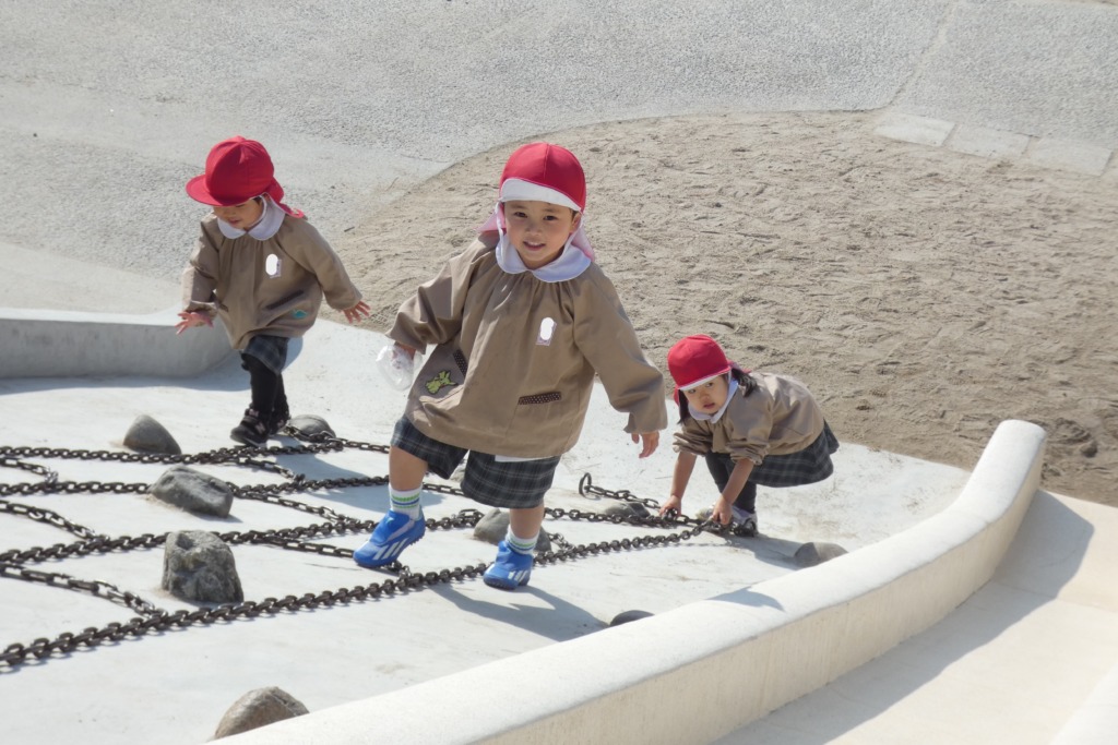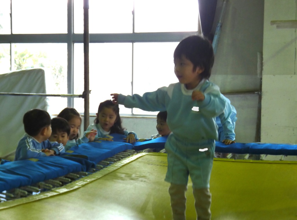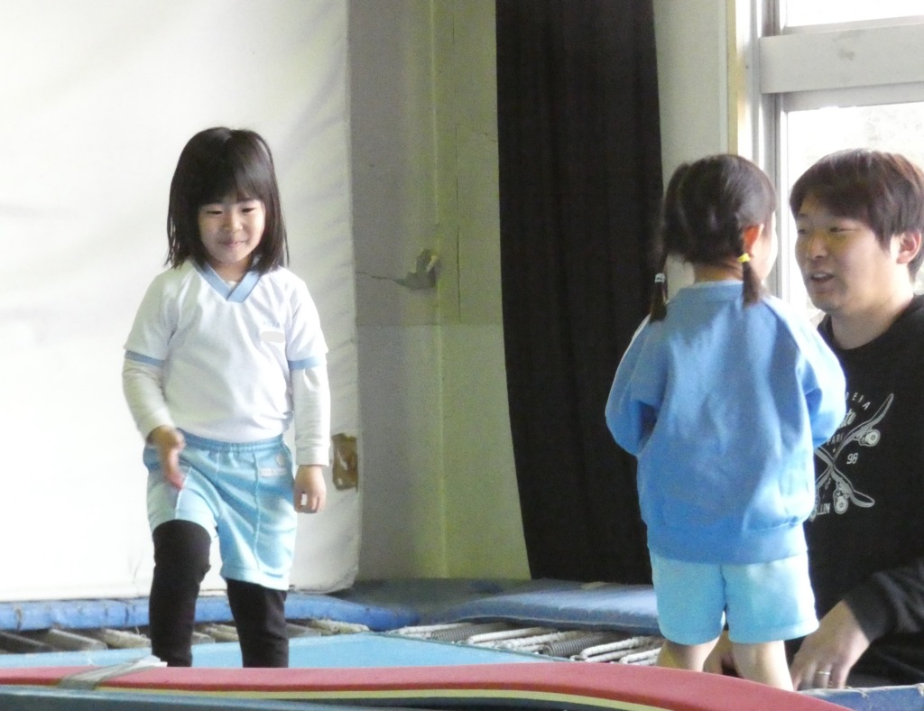 体操の先生の声に合わせて跳ぶ練習をしました。