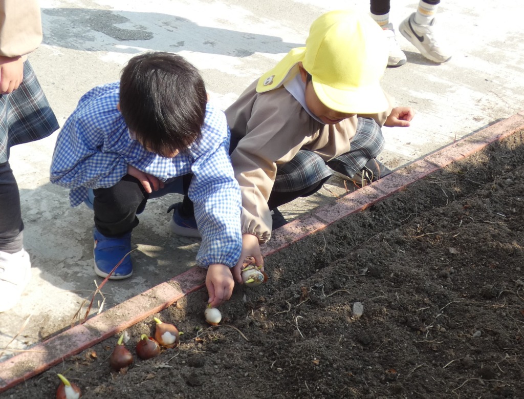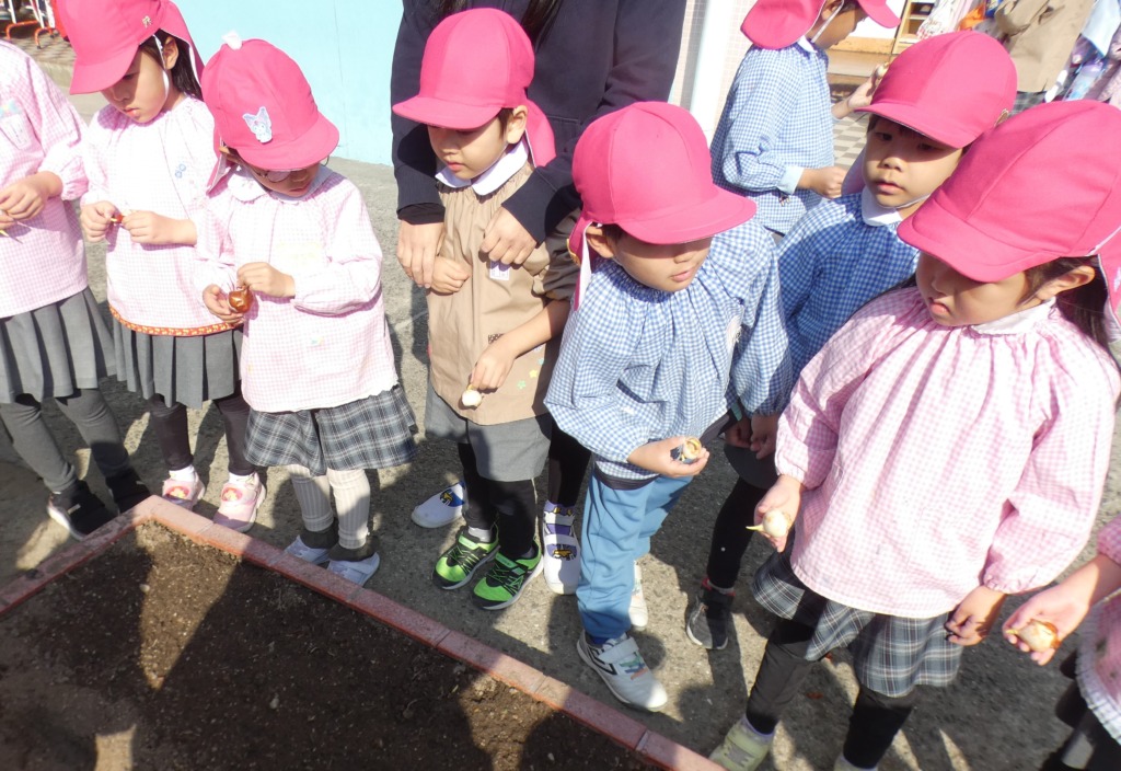 花壇にチューリップ🌷の球根を植えました。