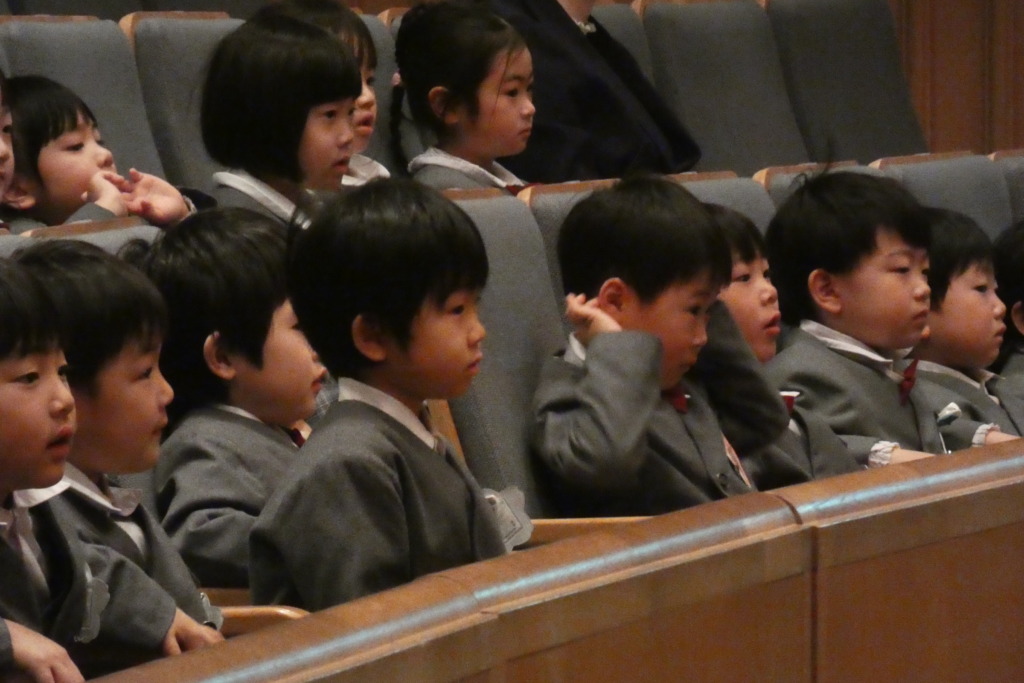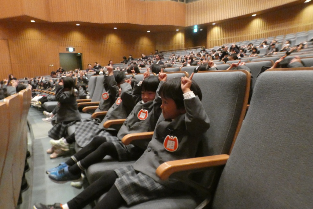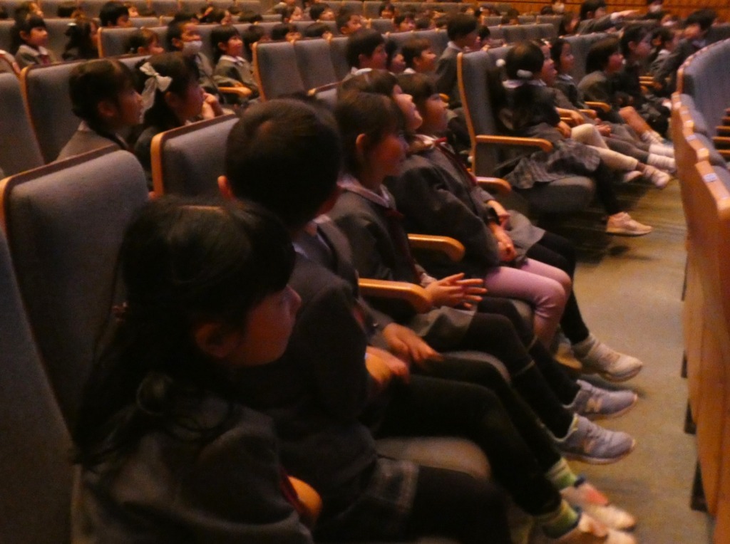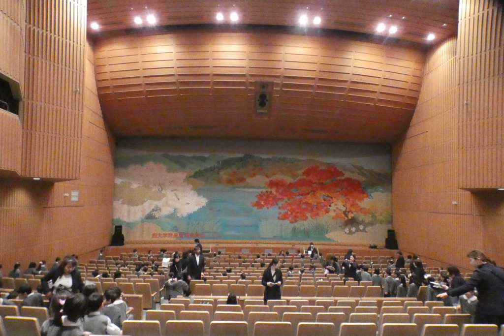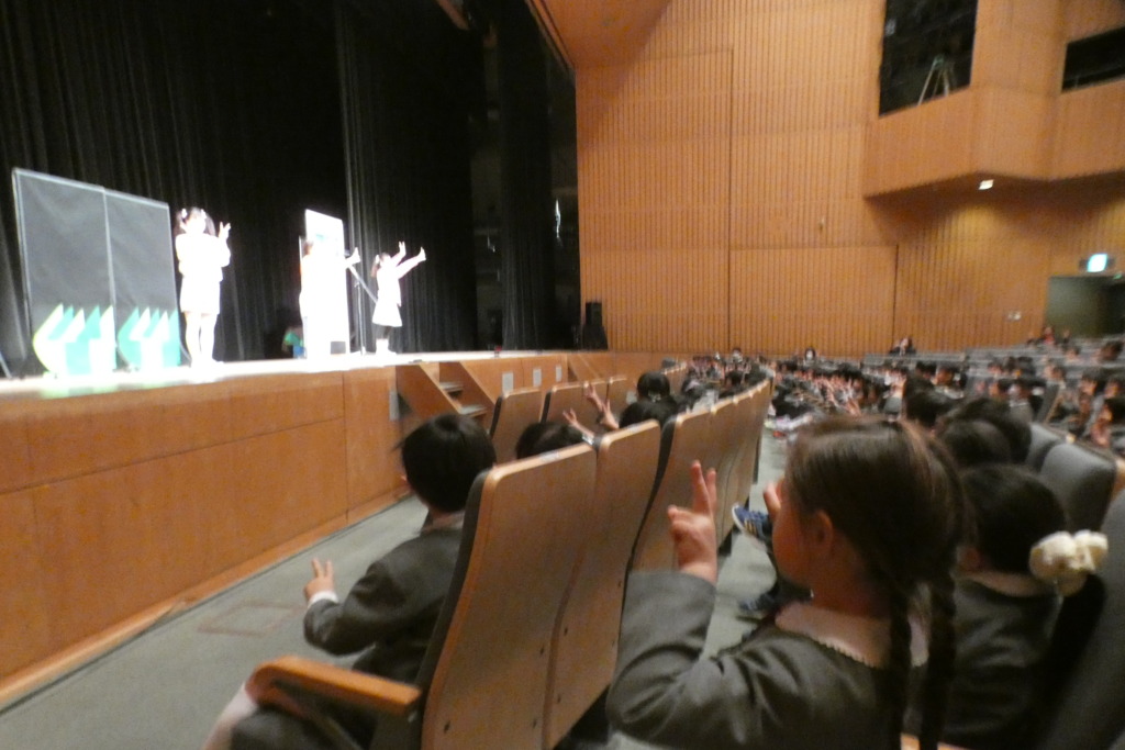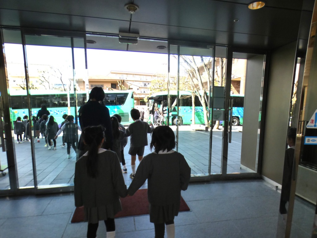 園バス、観光バスに乗ってメイプルホールまで行きました。