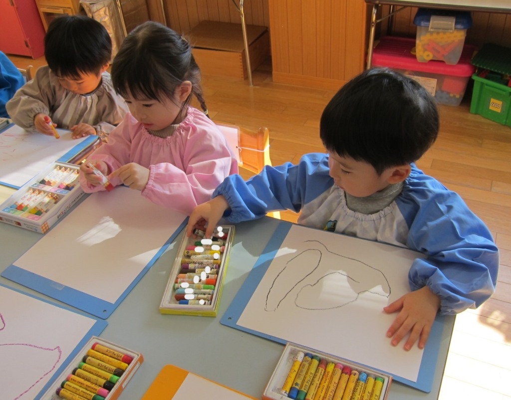 クレパスでのお絵描きは