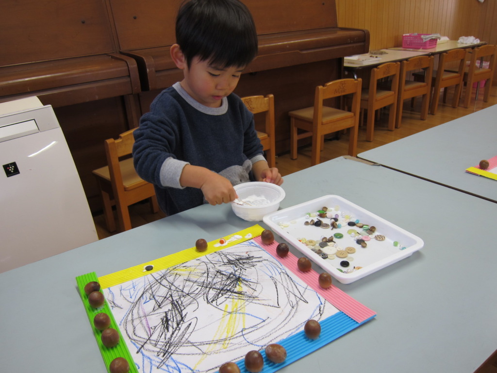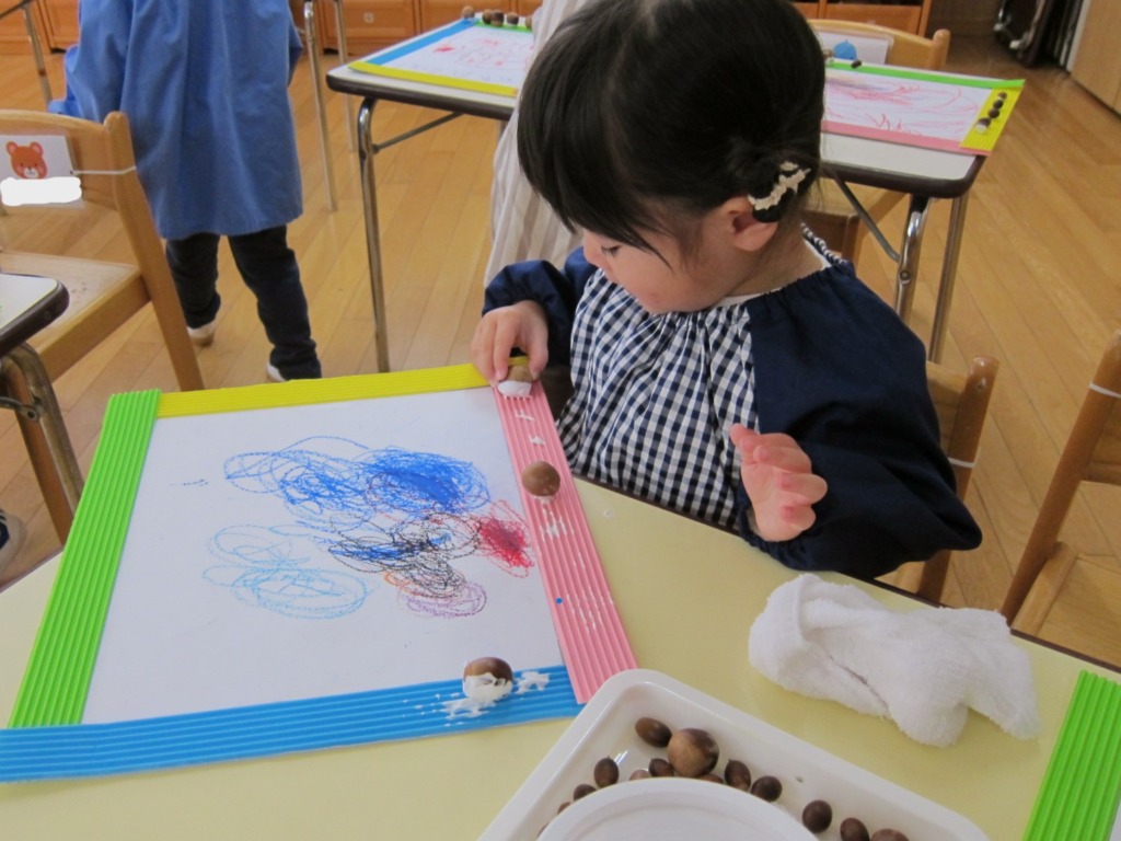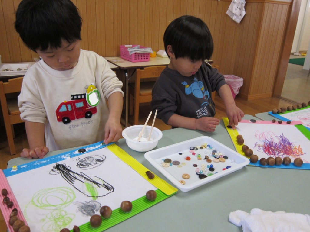 秋の園外保育で拾ったどんぐりや