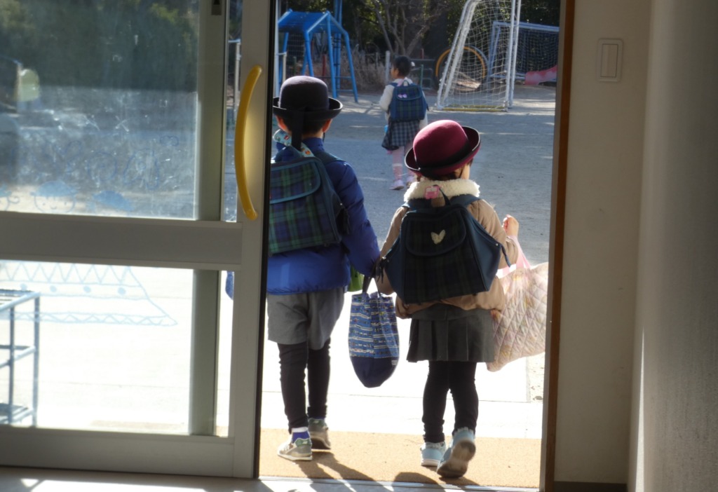 玄関で同じクラスのお友だちとばったり会って