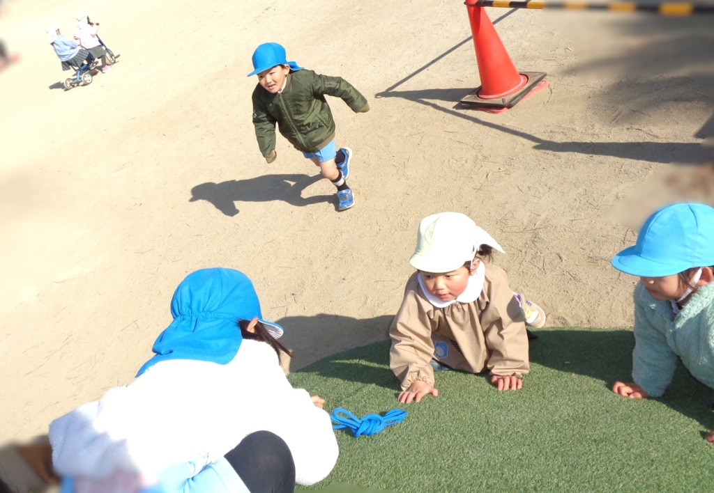 チャレンジしていると、年中さんが手を(なわとびも)のばしてくれて