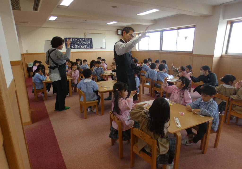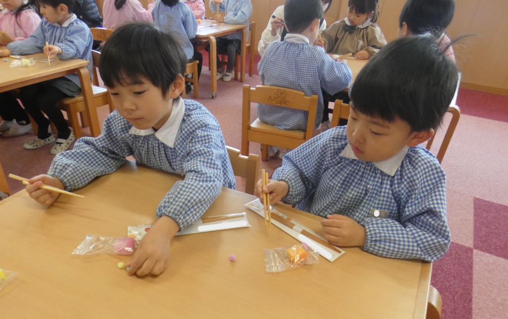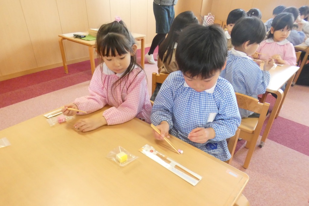 年中組さんの2クラスにお箸の教室を開いてくださりました。