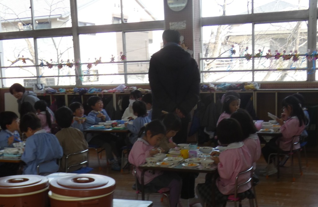 大学の先生もみんなの給食の様子を見にきてくれました。