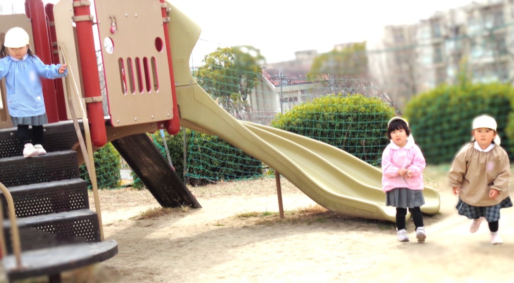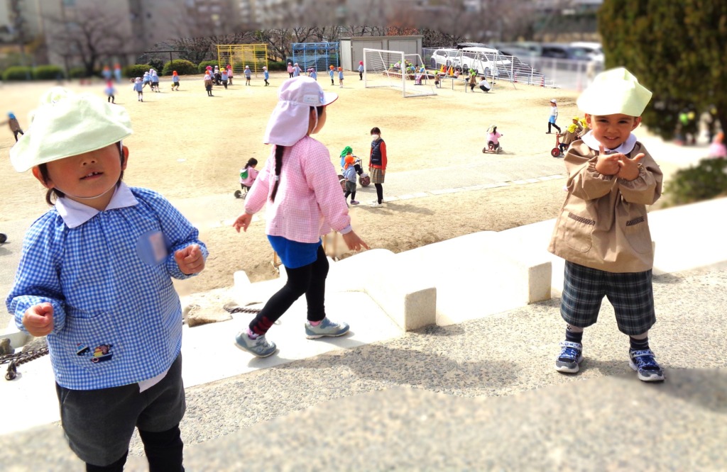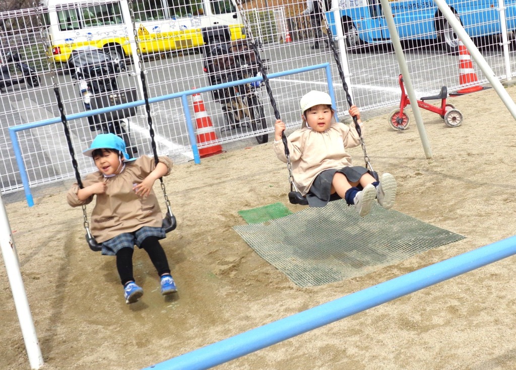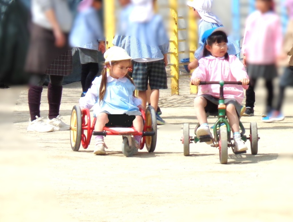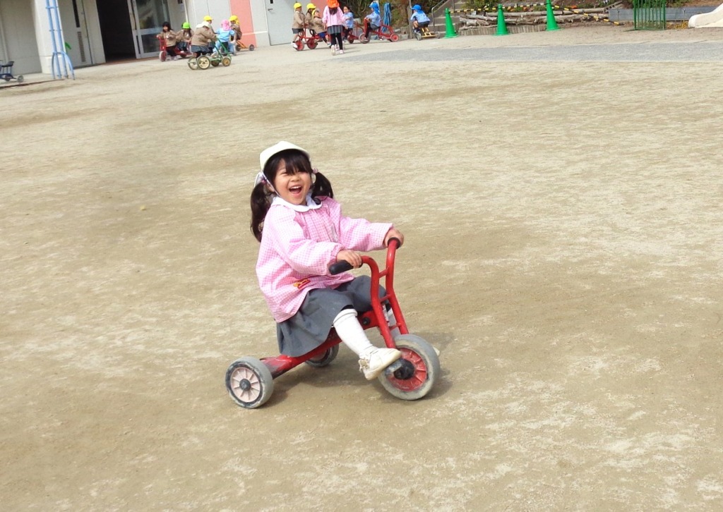 自然とつぼみクラスで集まって、ままごとをしたり、三輪車で競走したり