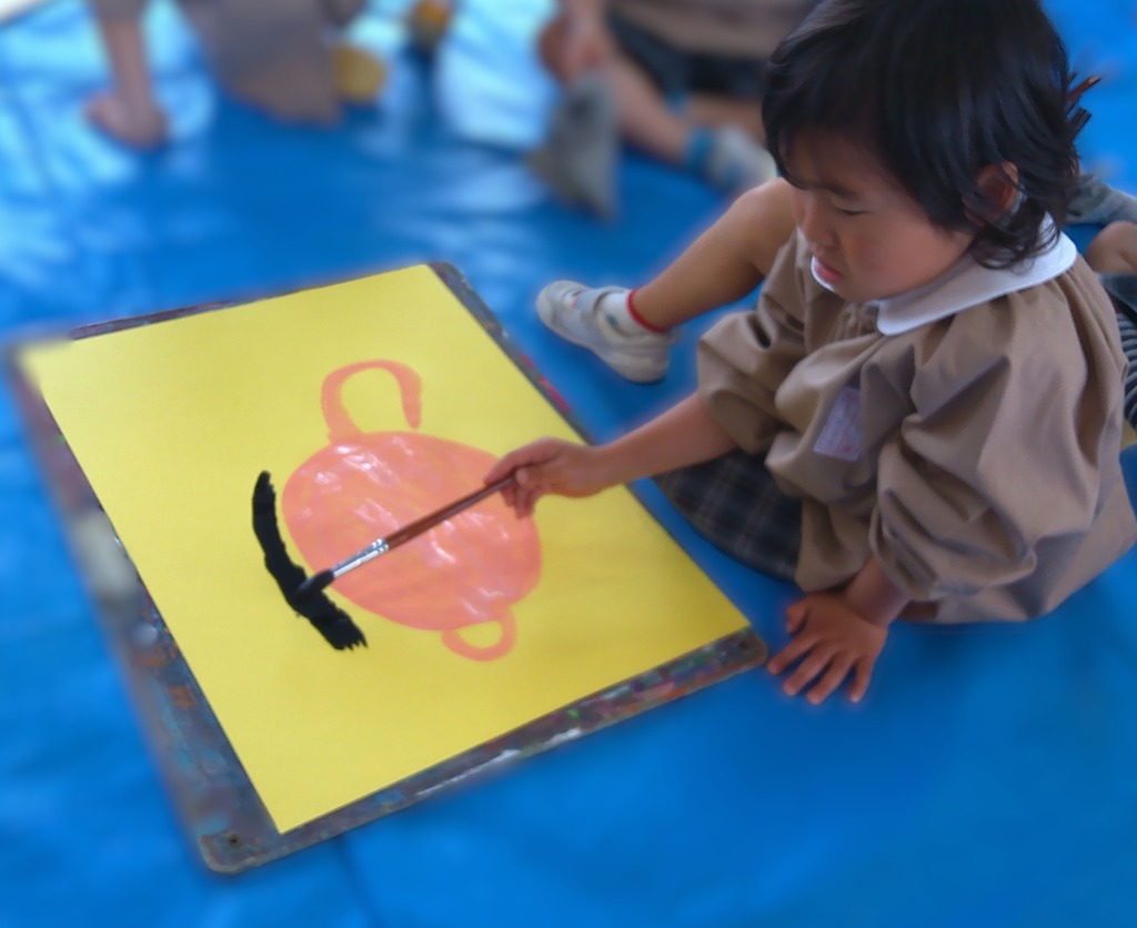 年中組さんは絵の具を使って絵を描いていました(*^▽^*)何を描いていたのかは…お楽しみです☆
