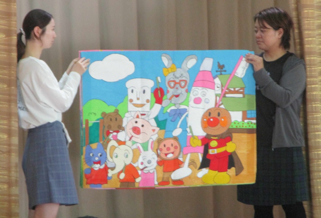 まずは紙芝居を使って歯磨きの大切さを伝えました。歯磨きをしないとどうなるか…バイキンマンが大変なことになっていました(*´Д`)