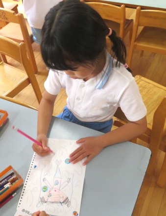 シール貼りや塗り絵、お絵描き・・・