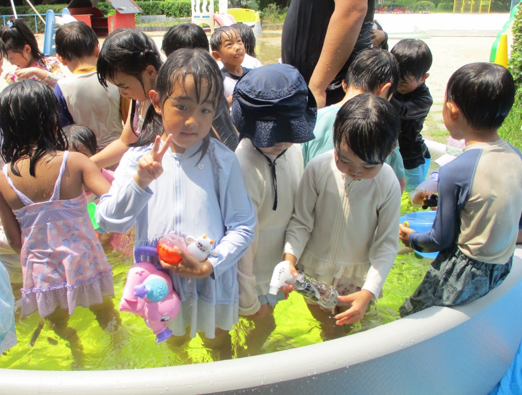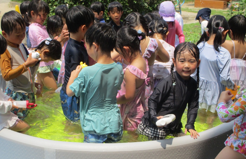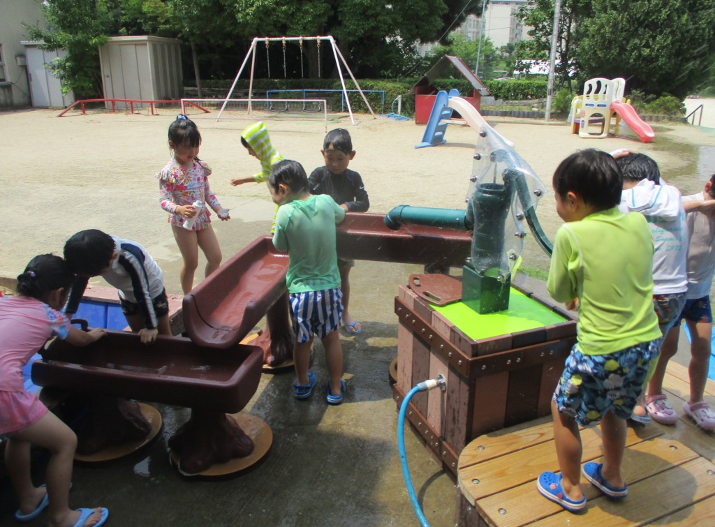 子どもたちはおもいおもいに水あそびを楽しんでいました。