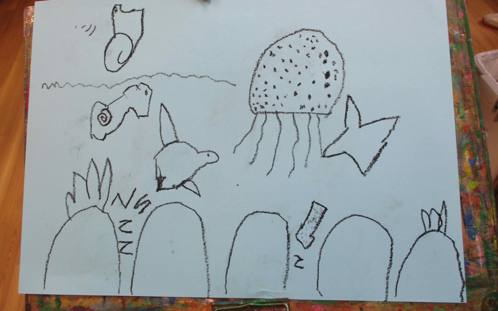 たくさんのクラスで絵を描いていました🎨題材が決まっている絵、絵本の場面を描く絵、自由に考え描く絵、思いおもいに表現して絵画を楽しんでいます☆
