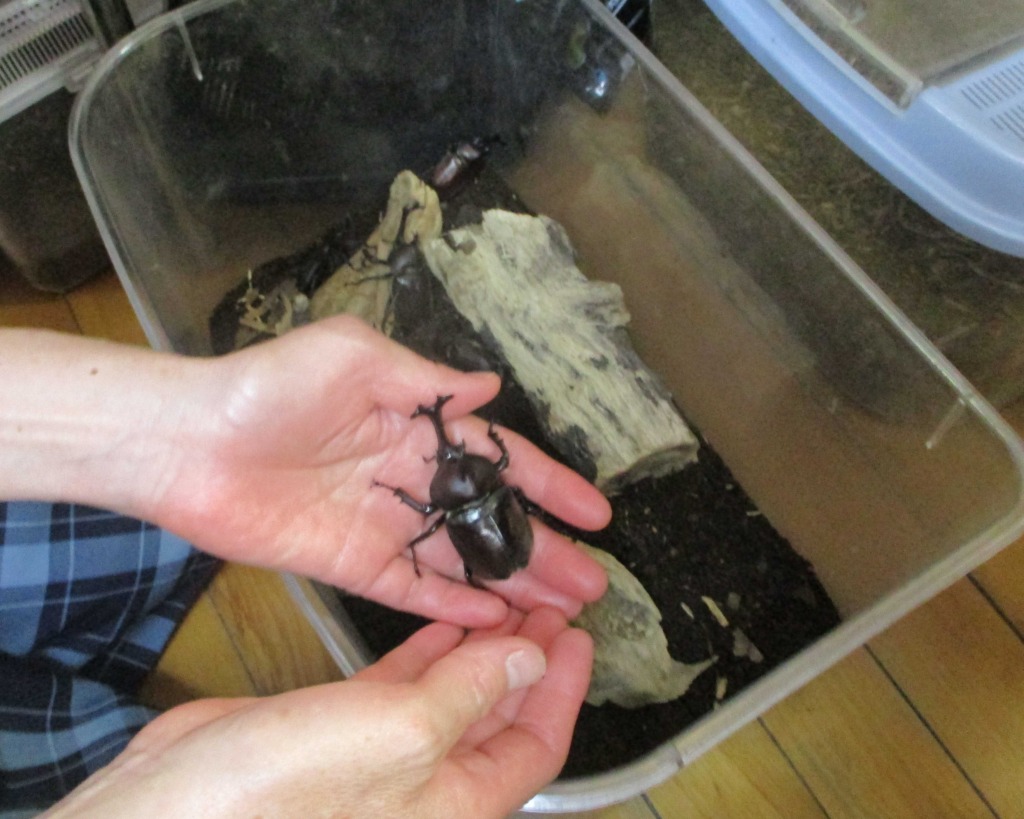 近所の方からカブトムシを譲っていただきました!おおきなカブトムシに興味深々の子どもたち♬去年から育てているカブトムシもいてとてもにぎわっています♬