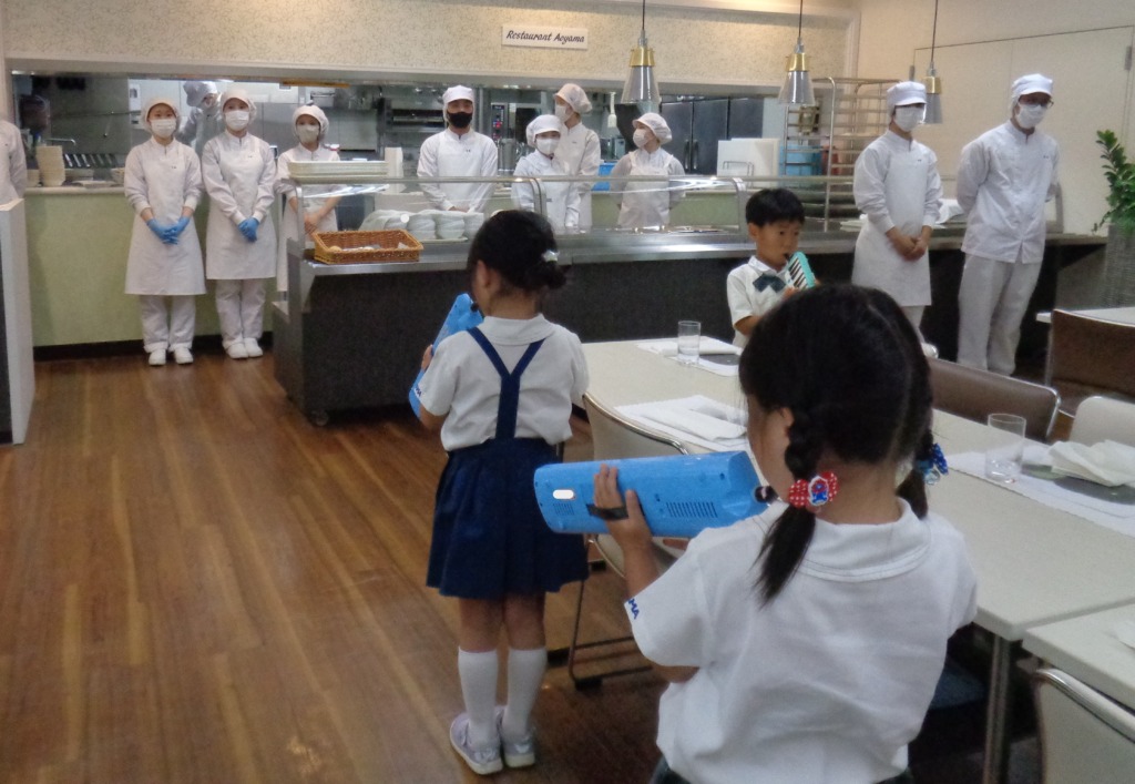 今日は、年長組の2クラスが青山大学のレストランに行きました。