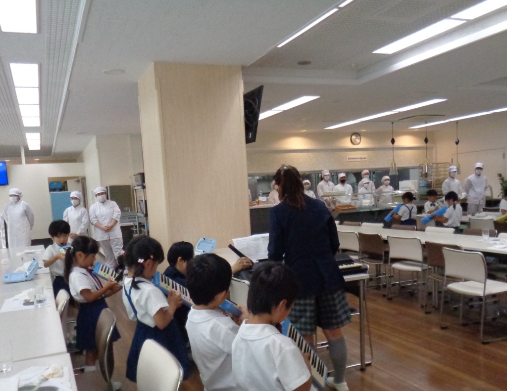 美味しい食事とテーブルマナーを教えていただいたお礼に鍵盤ハーモニカの演奏をしました。