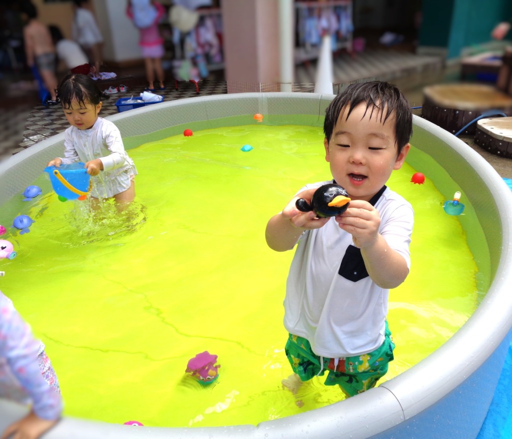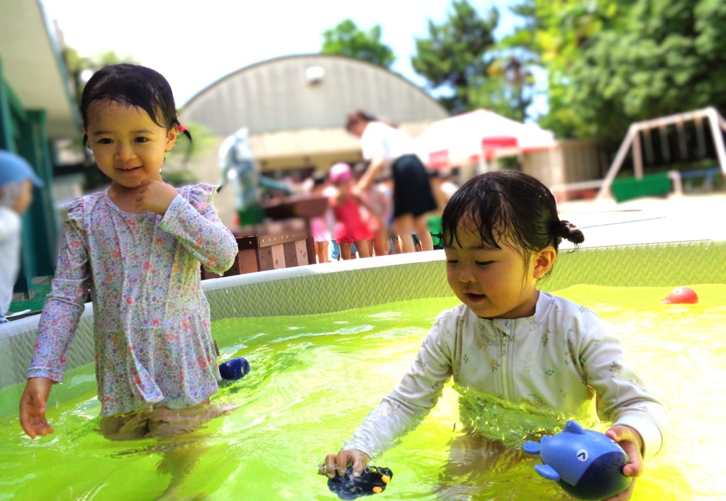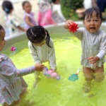 プールに入ったり、水てっぽうで遊んだり