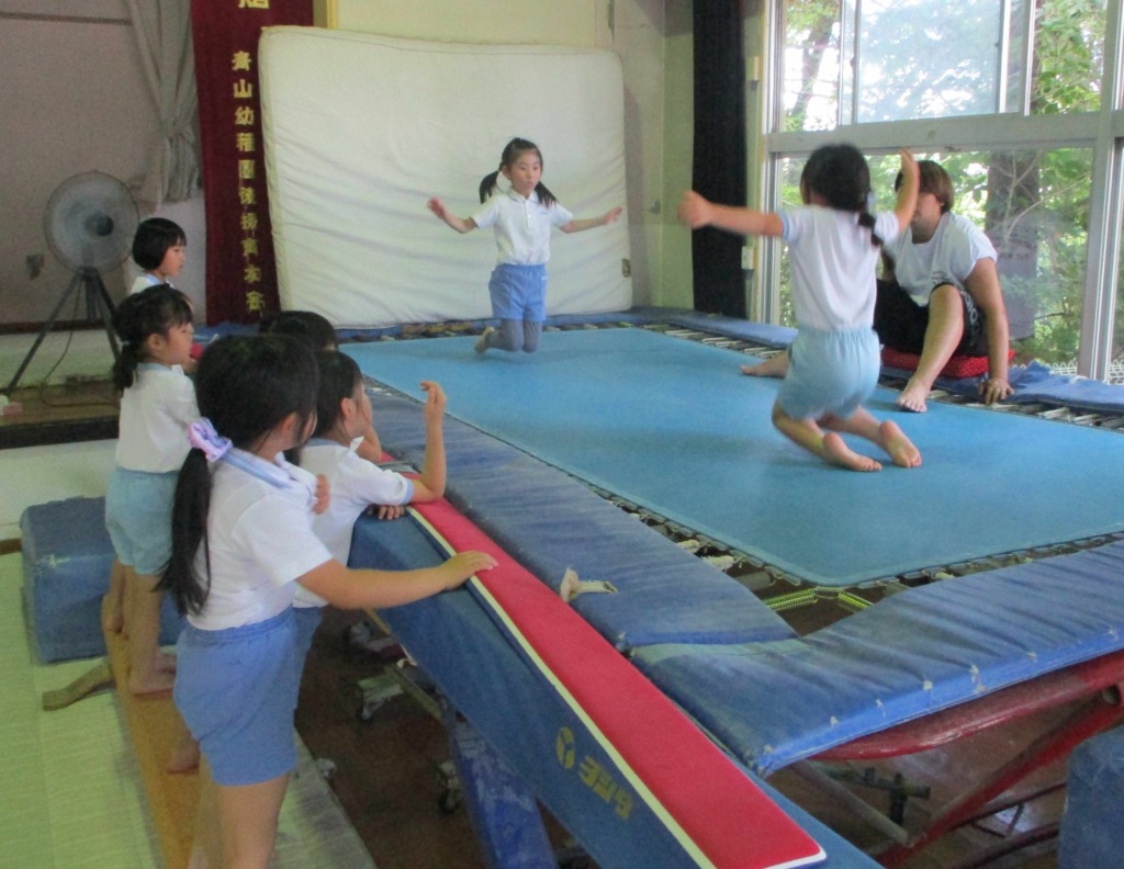 今日はトランポリンを見に行きました💡幼稚園では月に1度、トランポリンの時間があります。大きなトランポリンに小さいトランポリン、エアーマットの3つを用意して、子どもたちはいつもぴょんぴょん跳んでいます♬