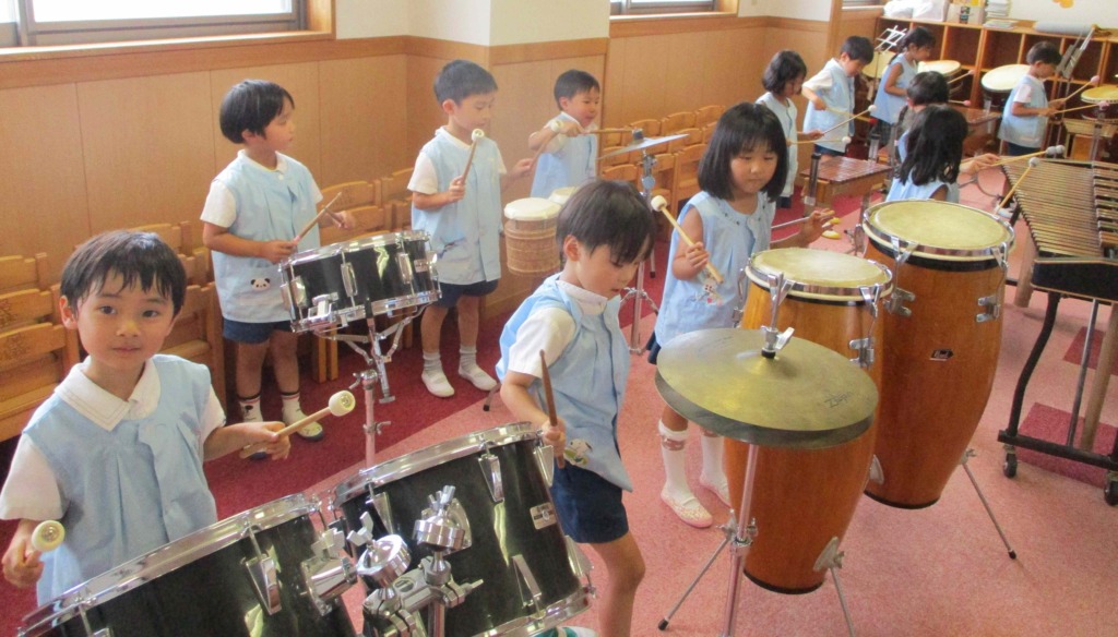 3階のフリールームに上がると、楽しい音が聞こえてきました♬子どもたちが楽器にふれていました(*^_^*)幼稚園には様々な楽器があります🎹色々な音がして聞いているこちらが楽しい気持ちになりました(^^♪
