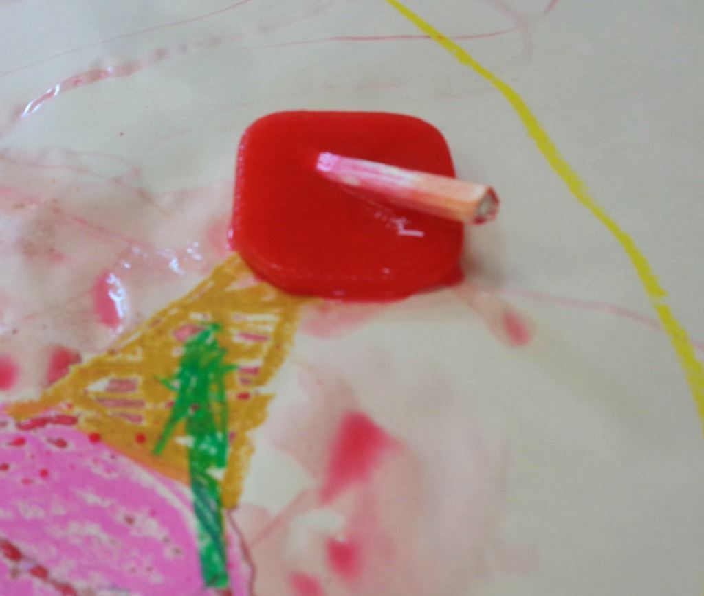 氷えのぐで色を塗ったり、へびのように長~い線を描きこんだり。