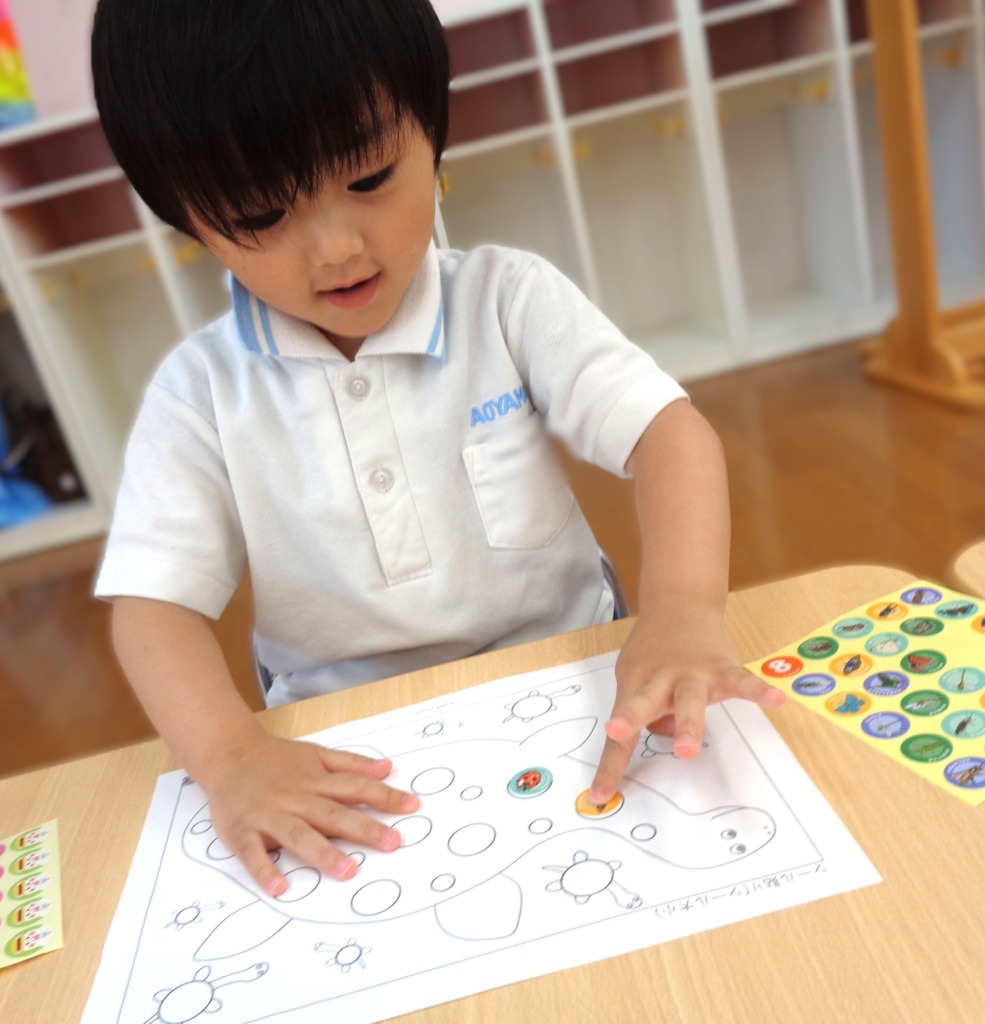 シール貼りやままごと、だるま落としなどで遊んでゆっくりと過ごしました。