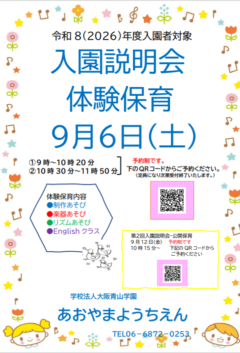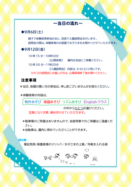 令和8(2026)年度入園の方を対象に、入園説明会と体験保育を実施いたします。