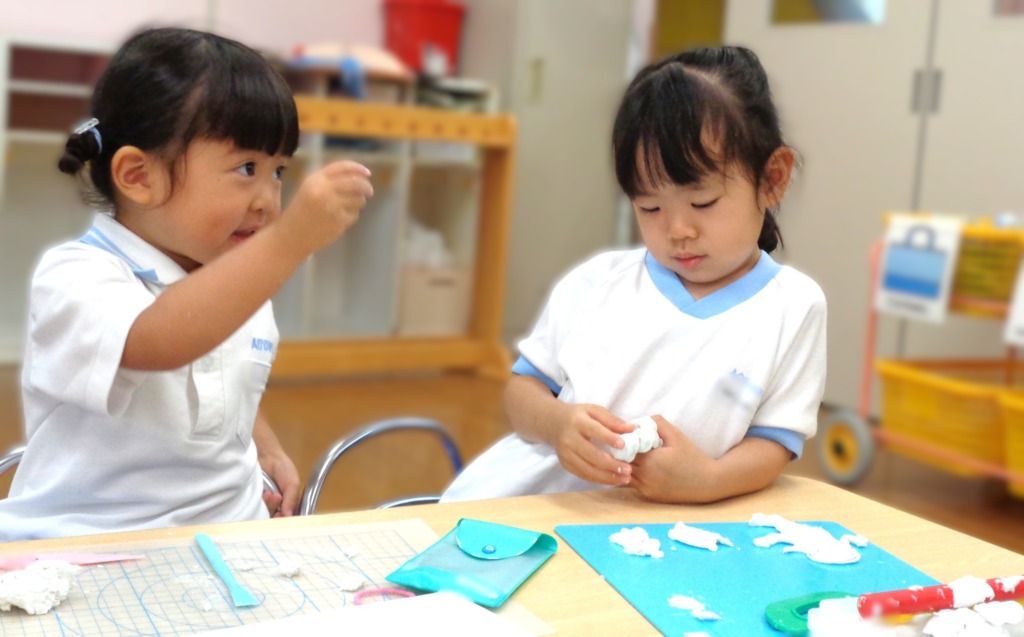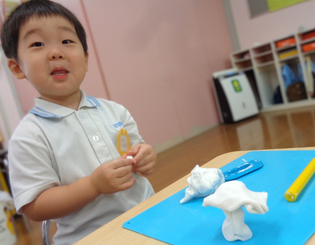 粘土あそびでは、おだんごやヘビなど、小さいものも作っていました。