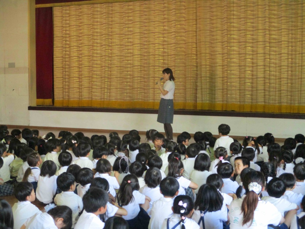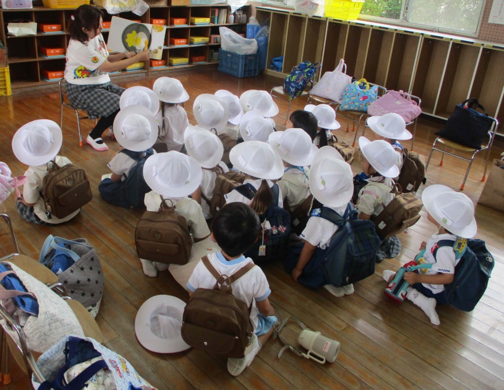 園長先生が1学期にあった出来事や様々なお話をしてくれました(*^-^*)4月に比べたらお話を聞く姿勢も少しずつ身についてきているかな☆