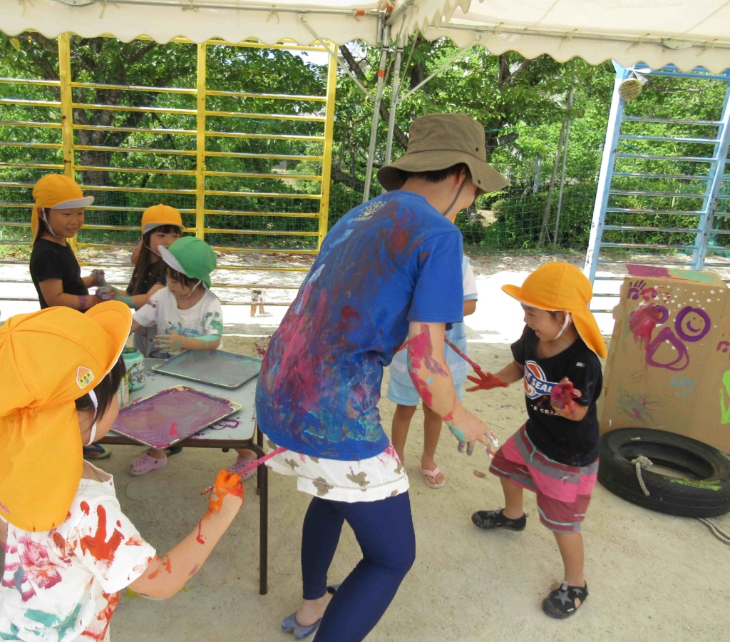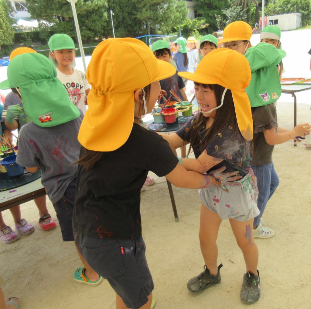 木曜日!!夏季保育2日目!今日もたくさんのお友だちが来てくれました(*^▽^*)昨日に引き続き、プールに入ったり、シャボン玉をしたり、絵の具を塗りあいっこしたり!!!楽しい時間を過ごしました(*^-^*)