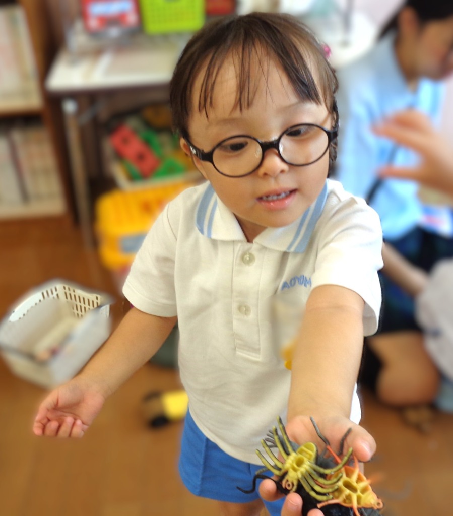 ですが今日は電車ごっこやおままごと、虫の玩具でごっこ遊びをしたり・・・