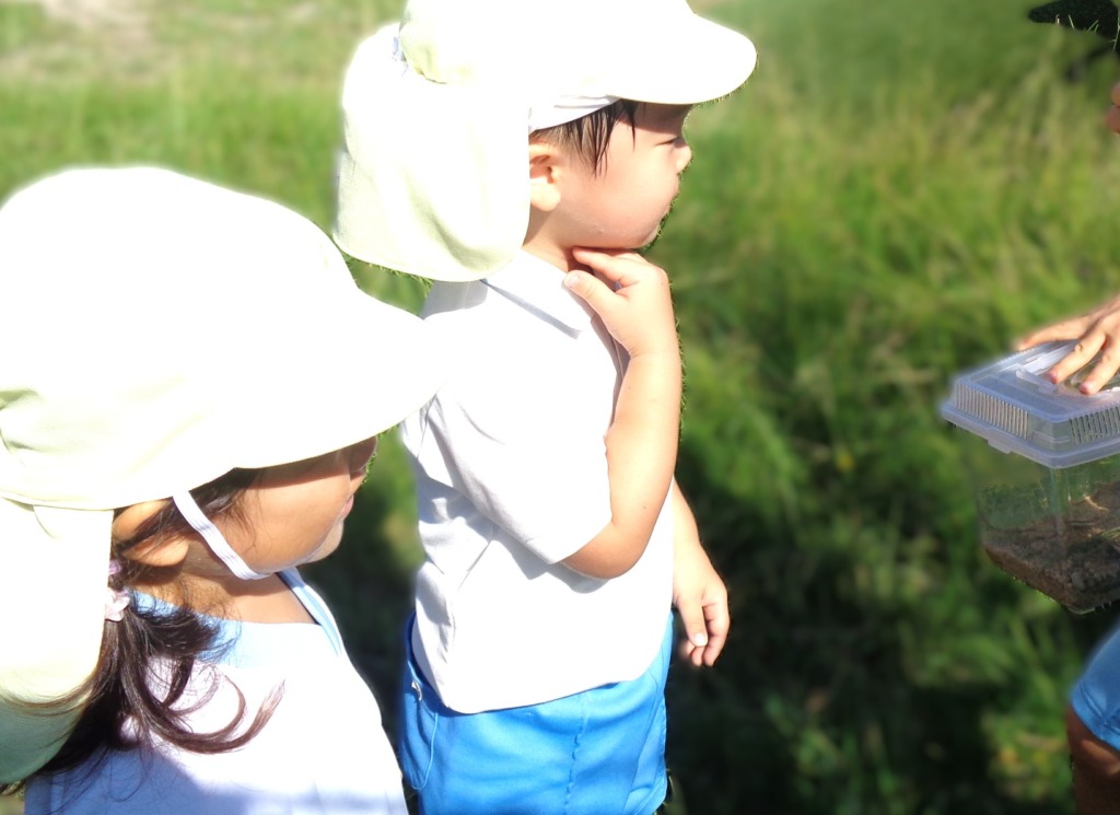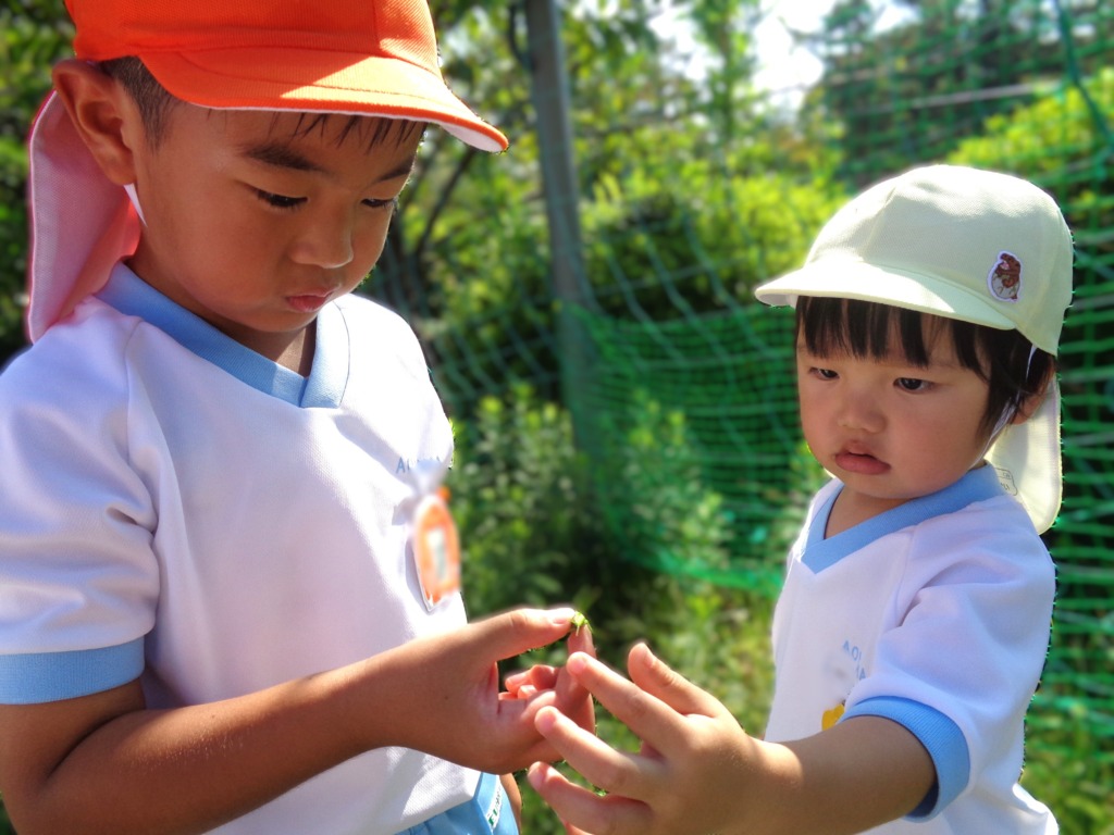 年長さんが上手につかまえて、バッタを見せてくれました!