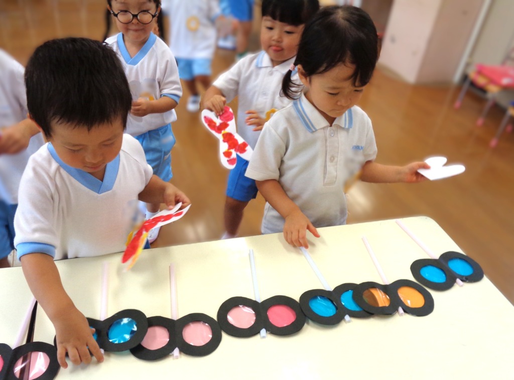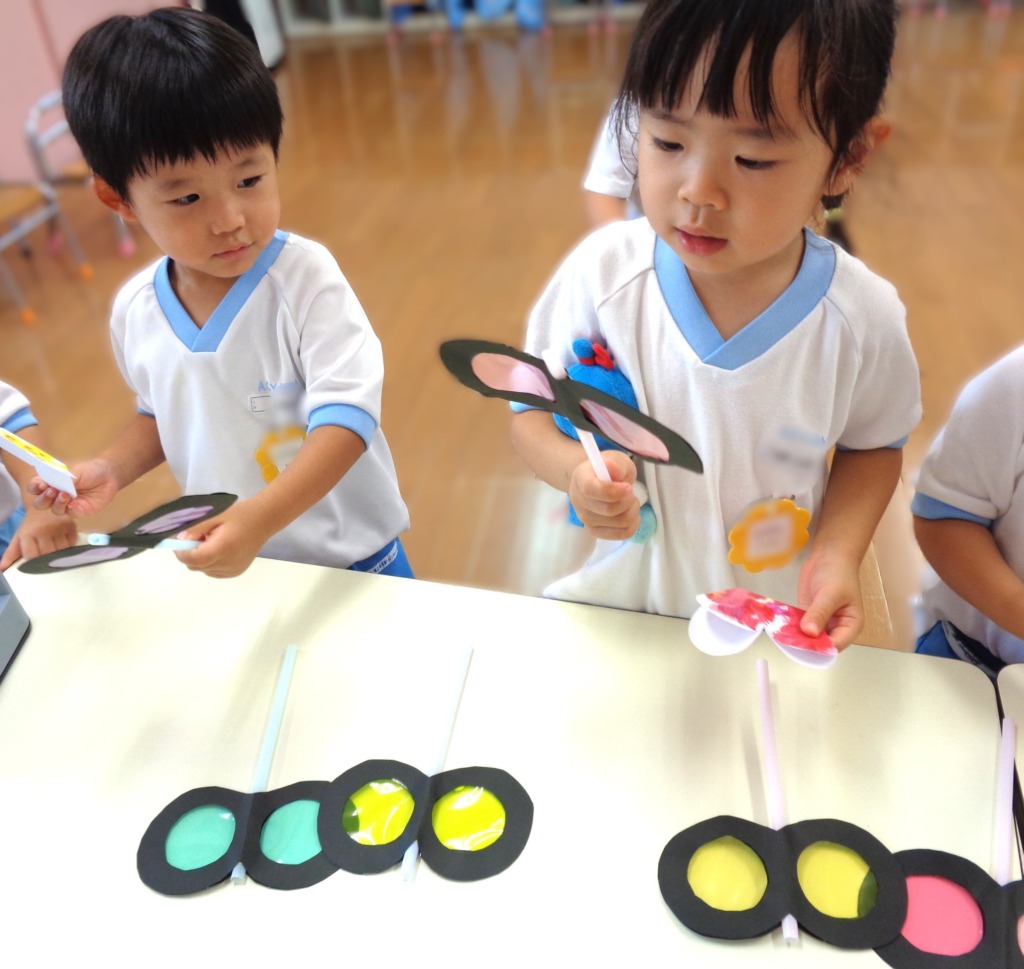 羽と合体して、目の部分をのぞいてみたり、「パタパタ~!」と飛ばして遊んだり、とても嬉しそうな子ども達。