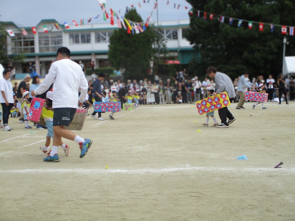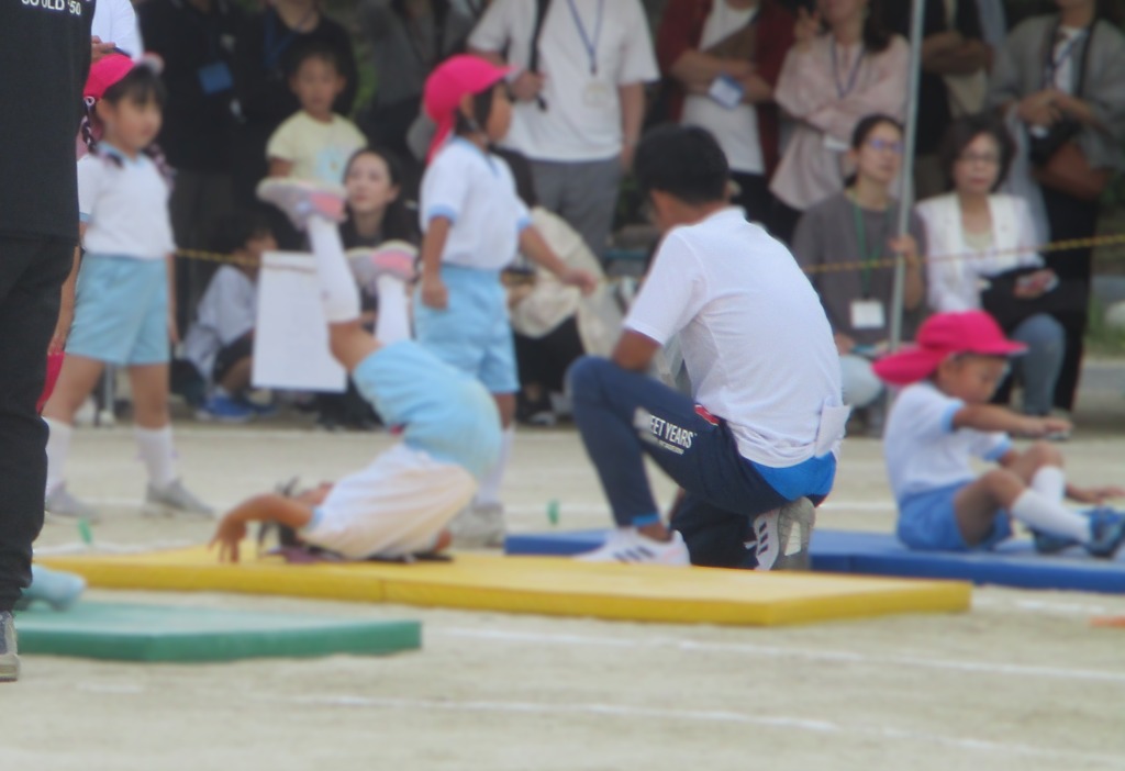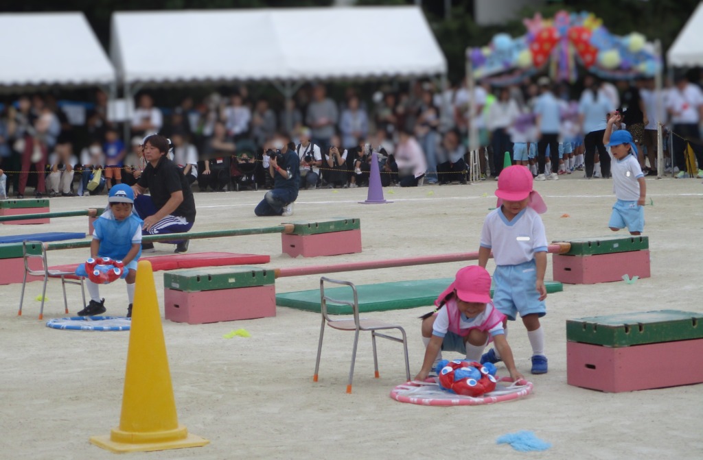 おうちの方に見守られながら、かけっこやリズムを頑張りました。