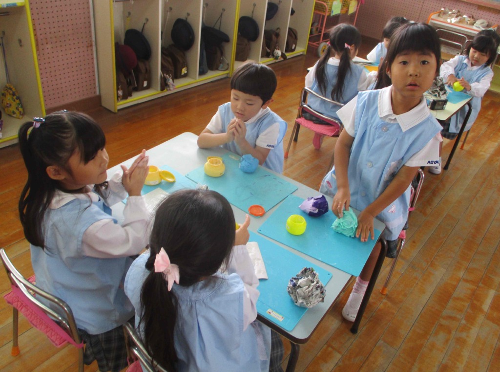 トランポリンをしたり、自由あそびをしたり…各クラスで楽しんでいました(^^♪年中組ではいよいよお店屋さんのオープンに向けて最終準備をおこなっていましたよ☆