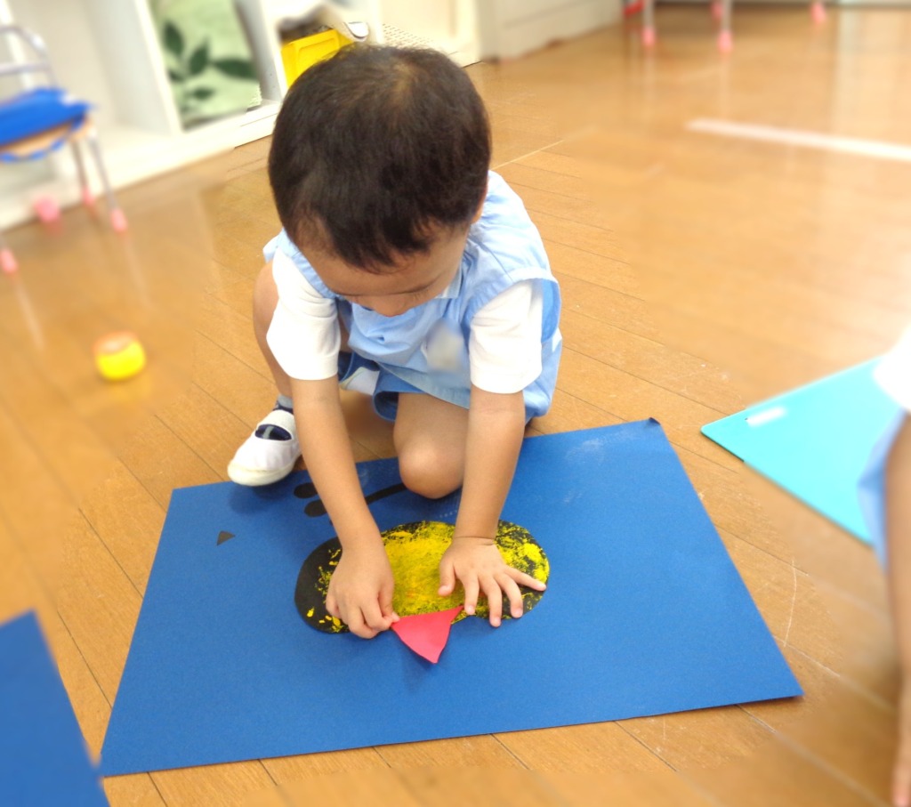 それぞれのパーツにのりを塗ったら「よし、できた!」と
