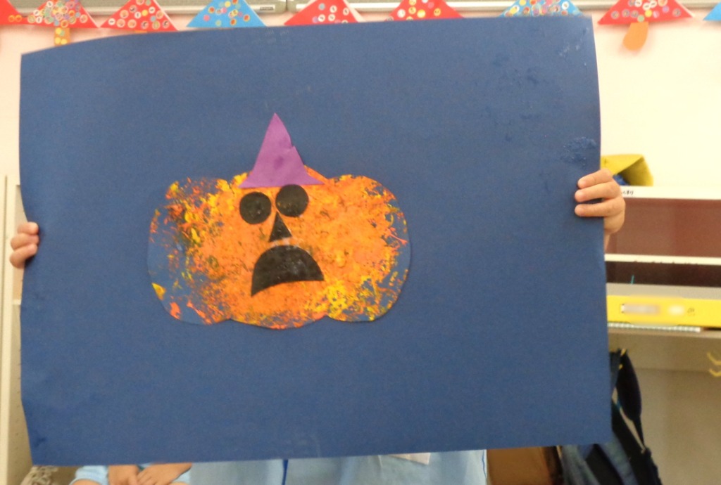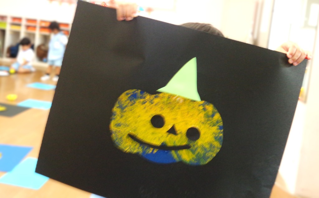 のりが楽しくなって、かぼちゃの顔いっぱいにペタペタと