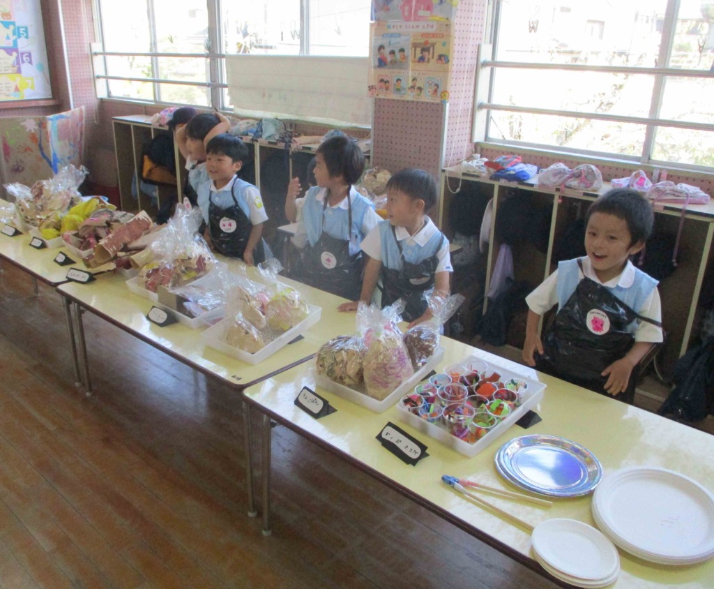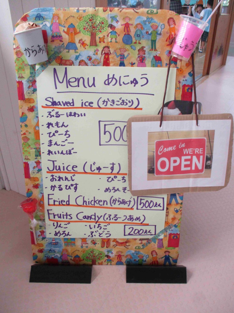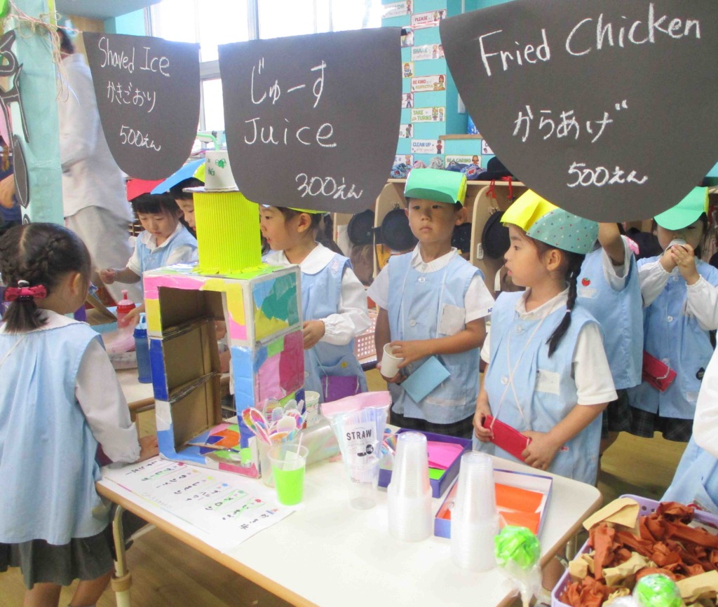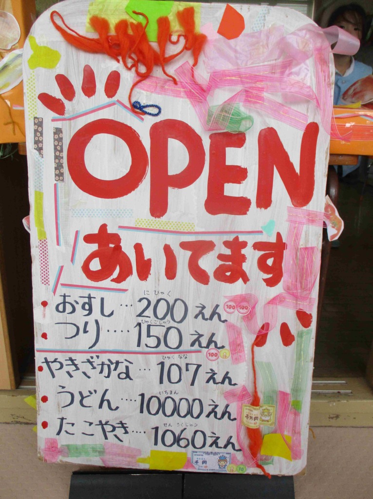 さっそくお店屋さんにお邪魔しましたが、どのクラスも工夫が凝らされ、店員さんも初めはぎこちなかったれど、どんどん接客が上手になり、楽しんで取り組んでいく様子がみられました☆